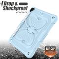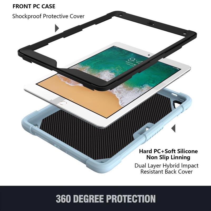 Sommerfugleformet kickstand PC + silikone tablet cover med skulderrem til iPad 9,7 tommer (2018)/(2017)/iPad Air 2 - blå