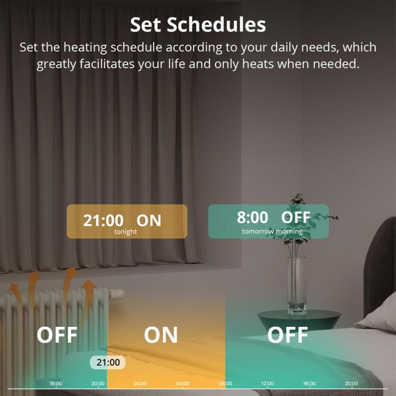 Smart styring: SONOFF Zigbee termostatisk radiatorventil tilbyder omfattende smarte funktioner, herunder APP-fjernbetjening, stemmekommandoer, planlægning og gruppestyring til praktisk og effektiv varmestyring.