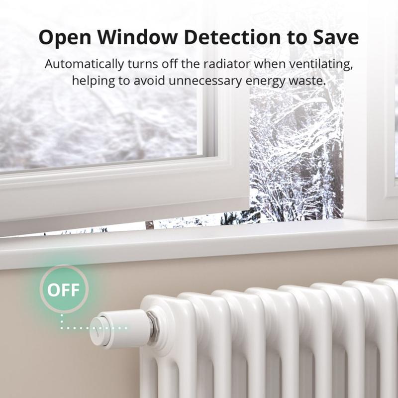 Registrering af vinduer: Slukker automatisk for radiatoren, når vinduer åbnes, hvilket forhindrer unødvendigt energispild og forbedrer energieffektiviteten.