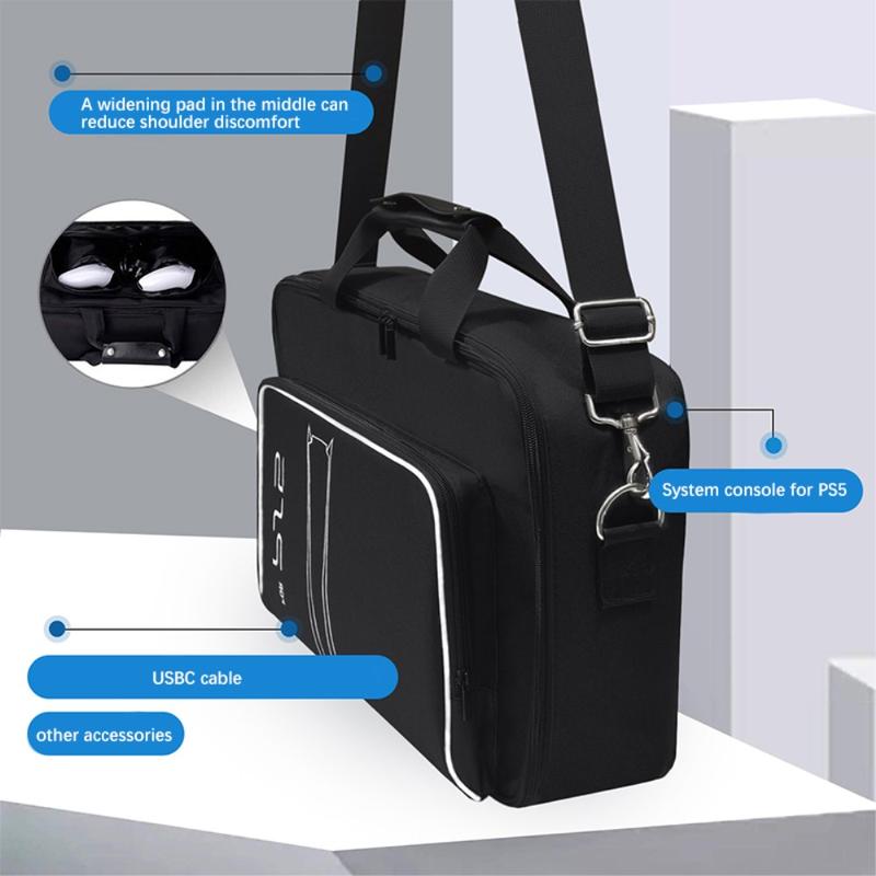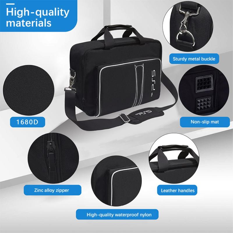 - Stor kapacitet: Plads til PS5-konsol, controllere, strømkabler, USB-kabler og spil.