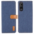 Sony Xperia 1 V Børstet TPU Cover - Karbonfiber - Blå