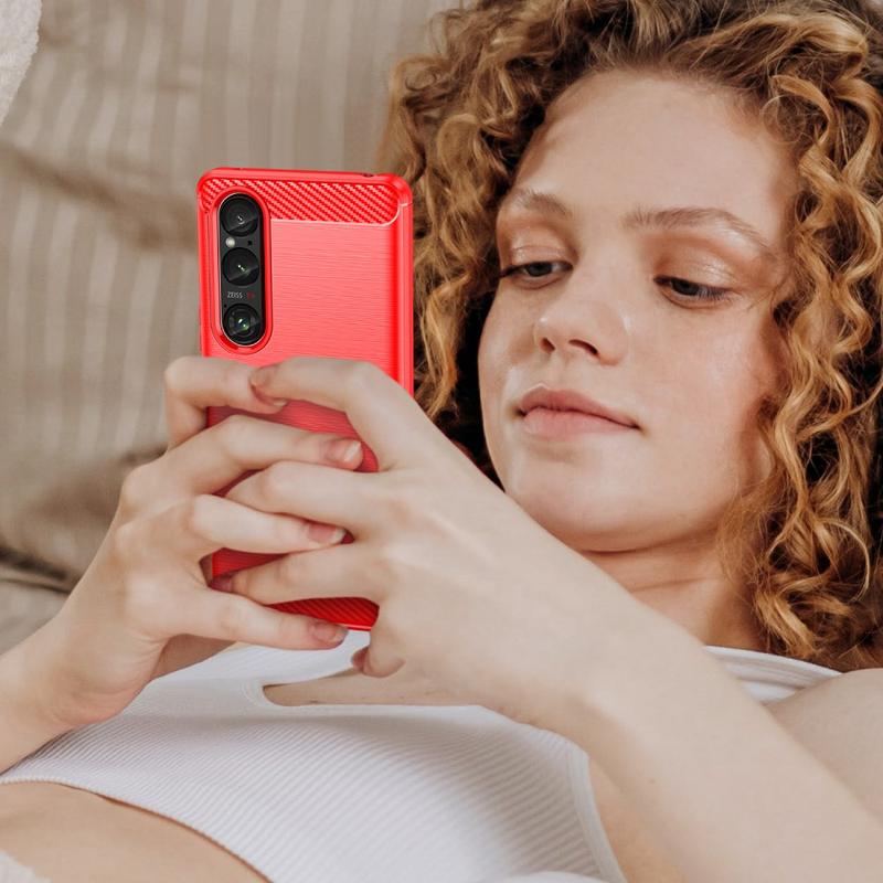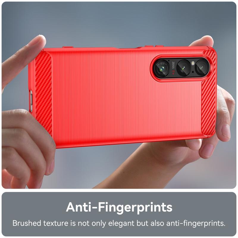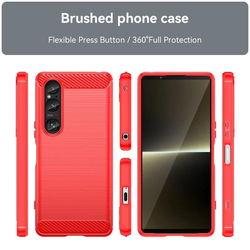 Sony Xperia 1 VI Børstet TPU Cover - Karbonfiber - Rød