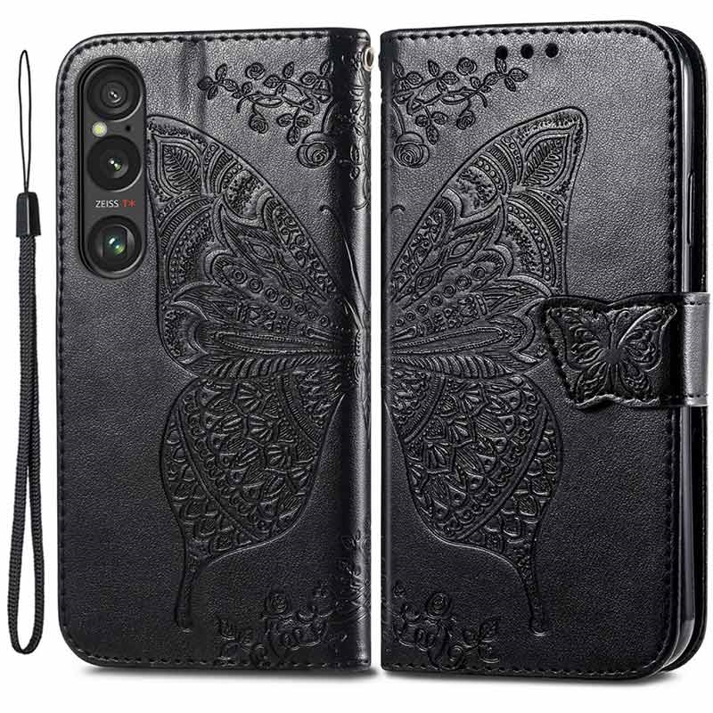 Sony Xperia 1 VI Butterfly Series Flip Cover med Pung - Sort