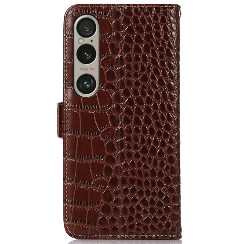 Sony Xperia 1 VI Crocodile Series Læderpung med RFID - Brun