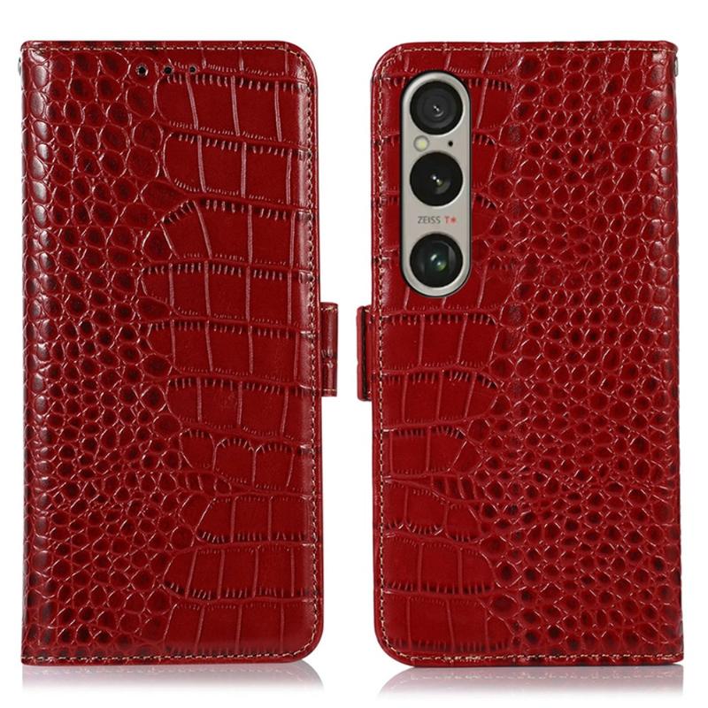 Sony Xperia 1 VI Crocodile Series Læderpung med RFID - Rød