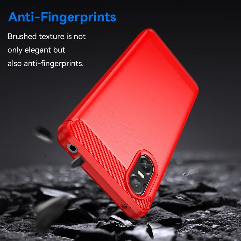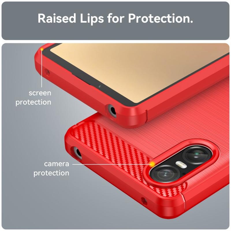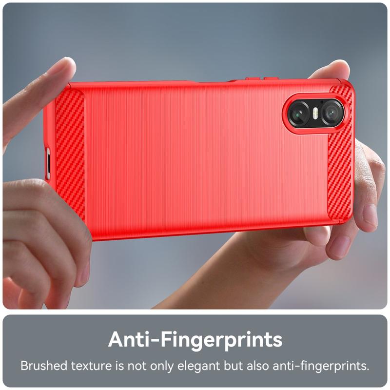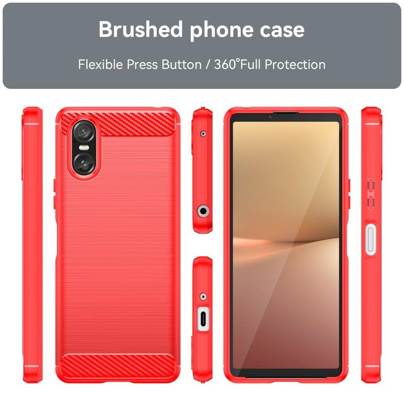 Sony Xperia 10 VI Børstet TPU Cover - Karbonfiber - Rød