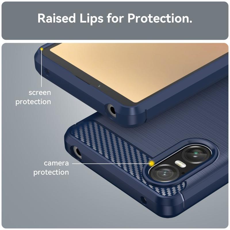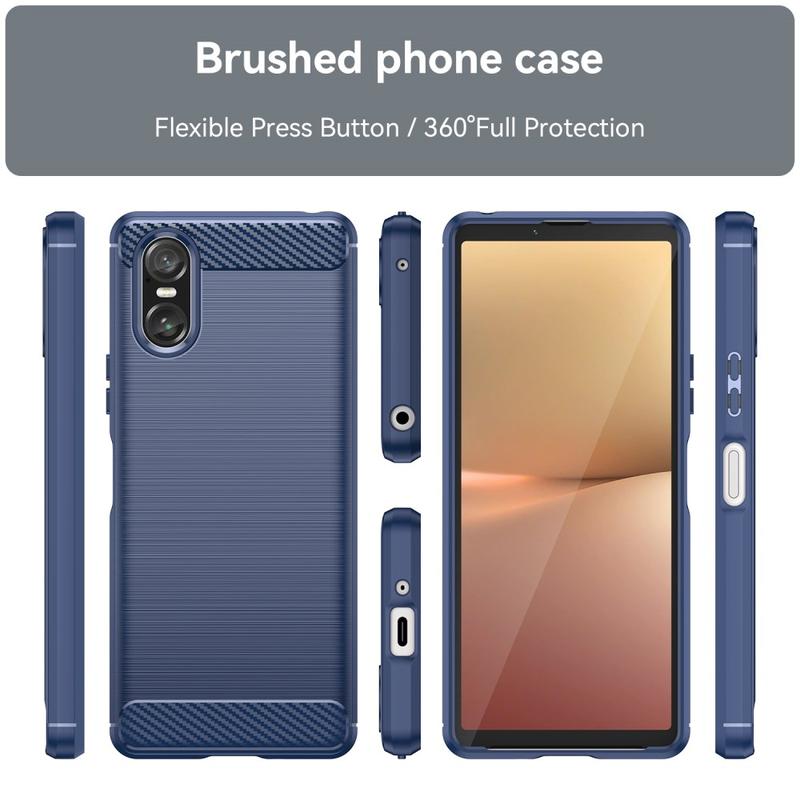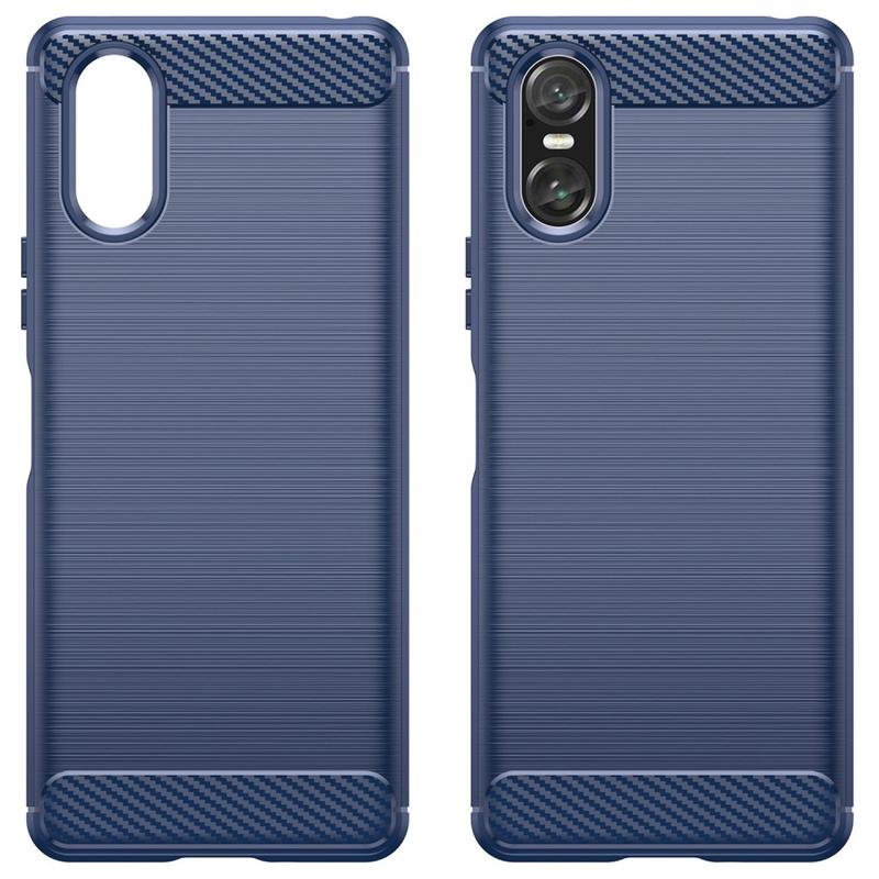 Sony Xperia 10 VI Børstet TPU Cover - Karbonfiber - Blå