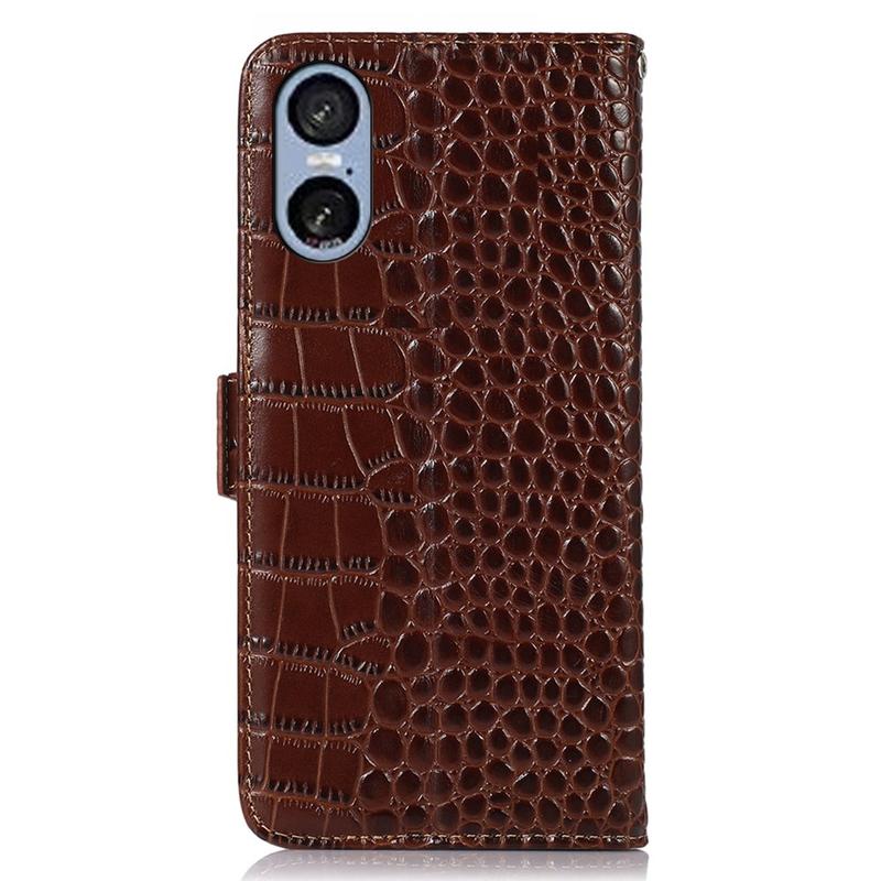Sony Xperia 5 VI Crocodile Series Læderpung med RFID - Brun
