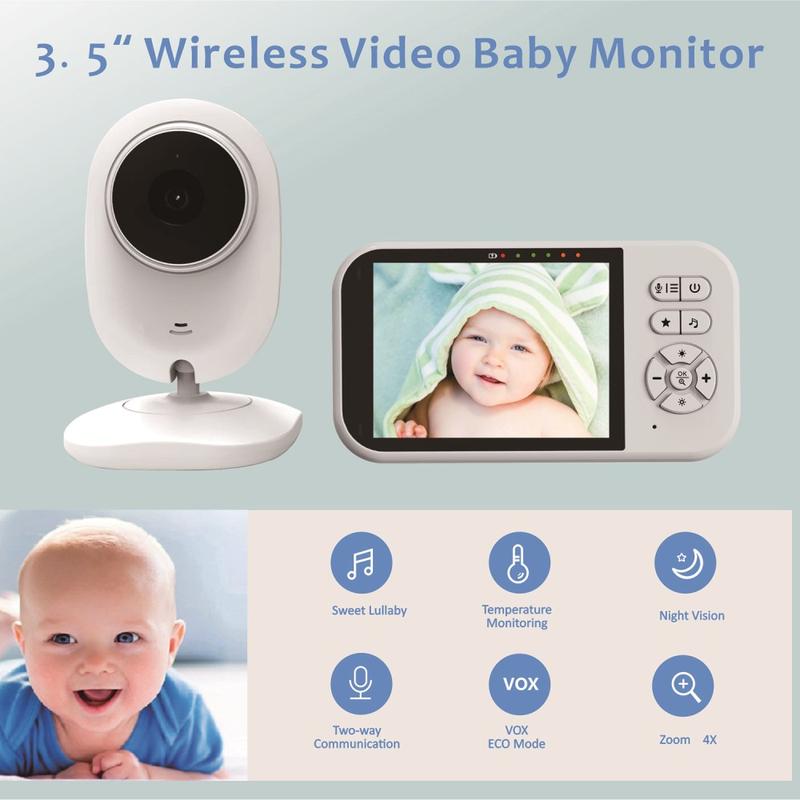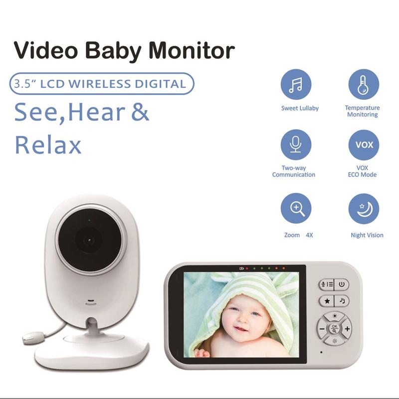 SP316 3.5-tommers babymonitor - tovejs lydintercom, nattesynskamera, VOX-tilstand og vuggeviser - EU-stik