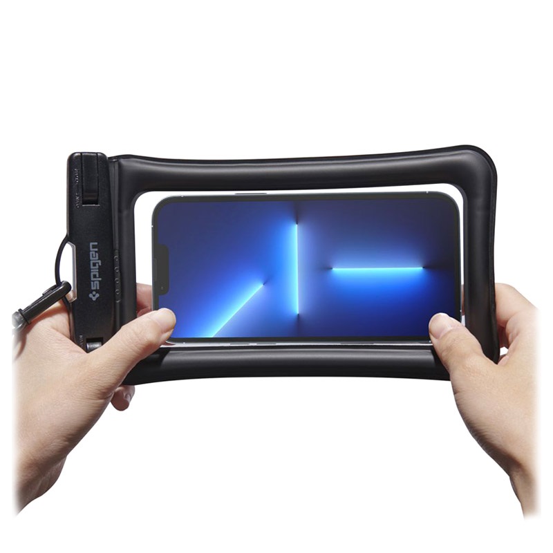 Spigen A610 universelle flydende cover er et must-have tilbehør til vandaktiviteter. Med en IPX8 vandtæt klassificering kan du bruge din telefon under vandet i op til 30 meters dybde. En luftlomme inde i coveret vil holde din telefon på vandoverfladen; så hvis du mister den, vil du nemt finde den igen. Det gennemsigtige design på begge sider lader dig tage billeder og betjene touchskærmen.