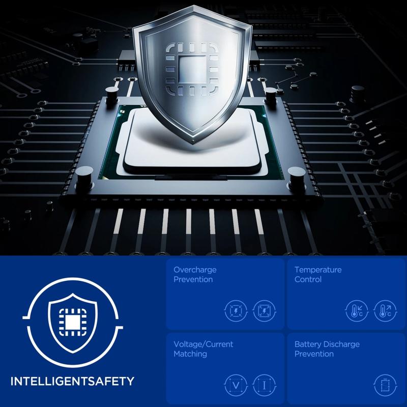 Det intelligente Quantum Boost-system genkender automatisk dine tilsluttede enheder og justerer opladningsparametrene for optimal hastighed, effektivitet og sikkerhed, hvilket sikrer batteriets sundhed på lang sigt.