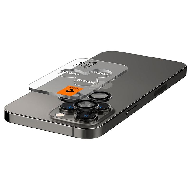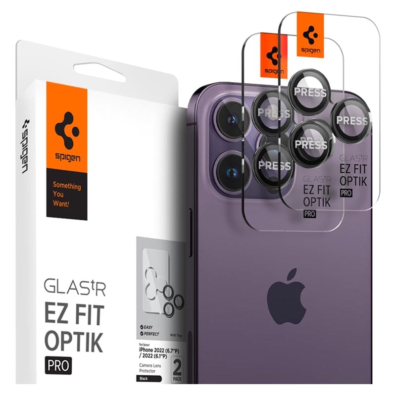 - Spigen Glas.tR Ez Fit Optik Pro linsebeskytter til iPhone 14 Pro, iPhone 14 Pro Max, iPhone 15 Pro, iPhone 15 Pro Max, iPhone 16 Pro, iPhone 16 Pro Max, iPhone 17 Pro, iPhone 17 Pro Max