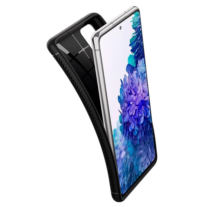 Rugged Armor coveret fra Spigen vil beskytte din Samsung Galaxy S20 FE mod skader og give den et fedt look.