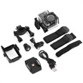 SJ60 sports kameraet inkluderer et vandtæt etui, et vandtæt spænde, en vandtæt klips, et cykelspænde, en kameraklips, en fastgjort base, en velcrostrop, et microUSB kabel og en brugermanual.