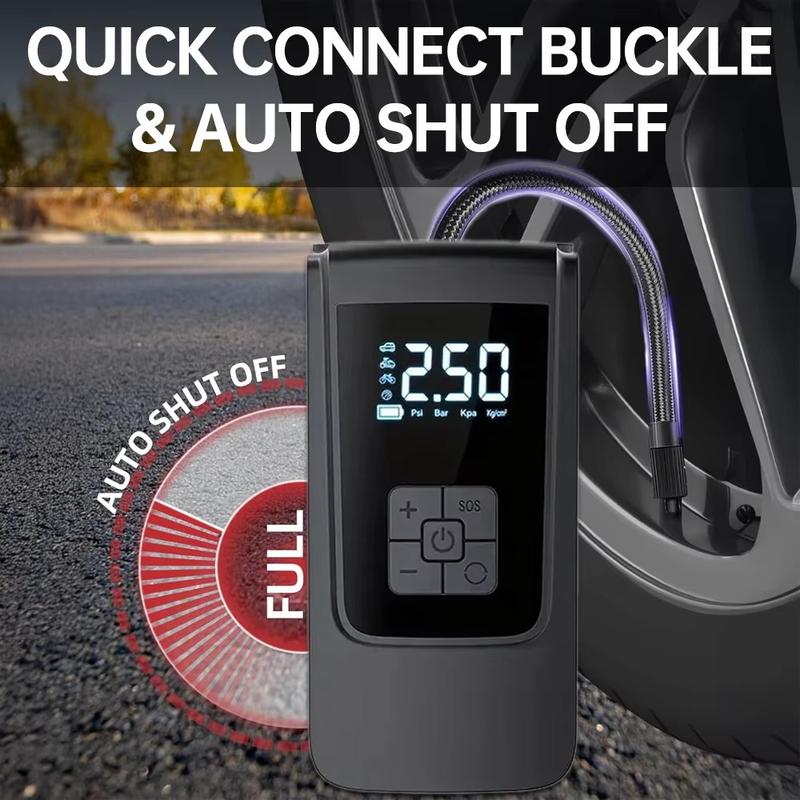 - Smart digitalt display viser dæktrykket tydeligt med en nøjagtighed på 1,5 PSI for mere præcis oppumpning.