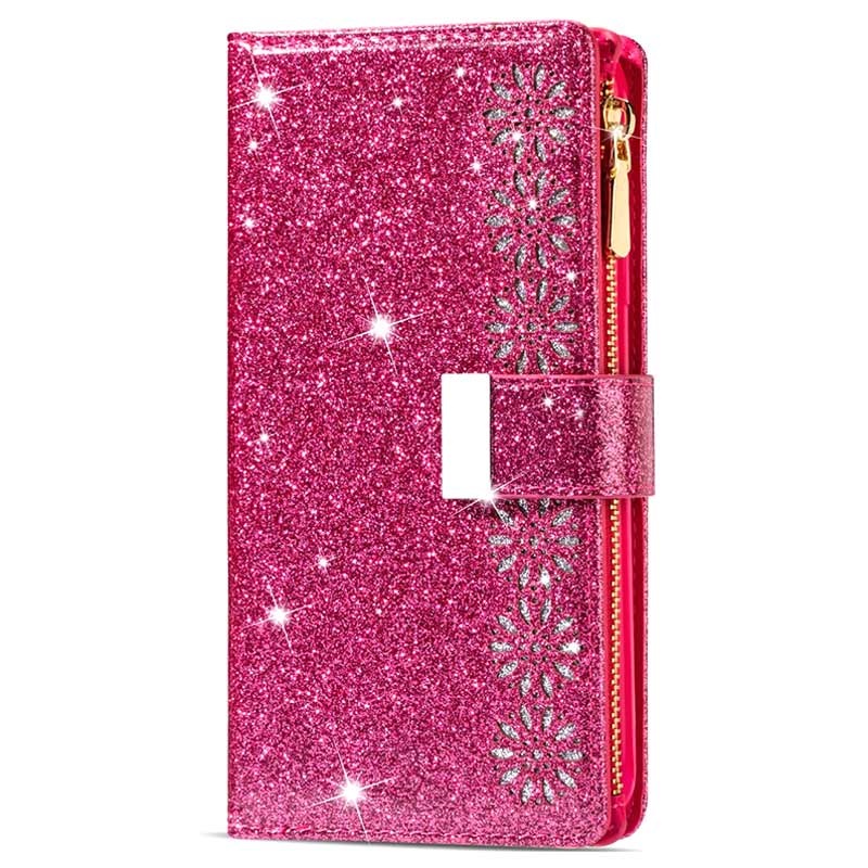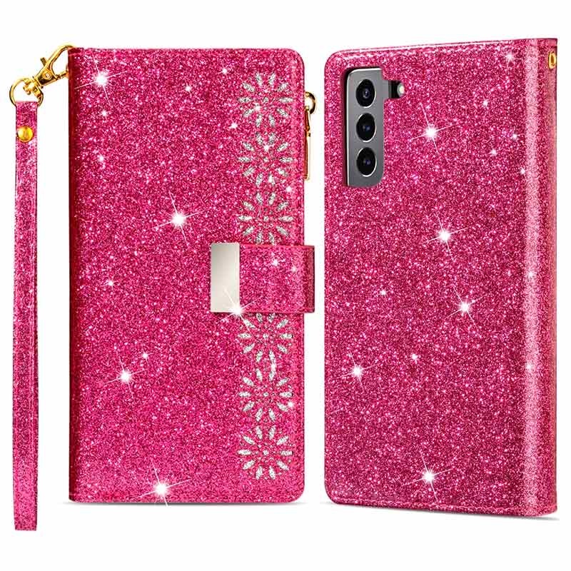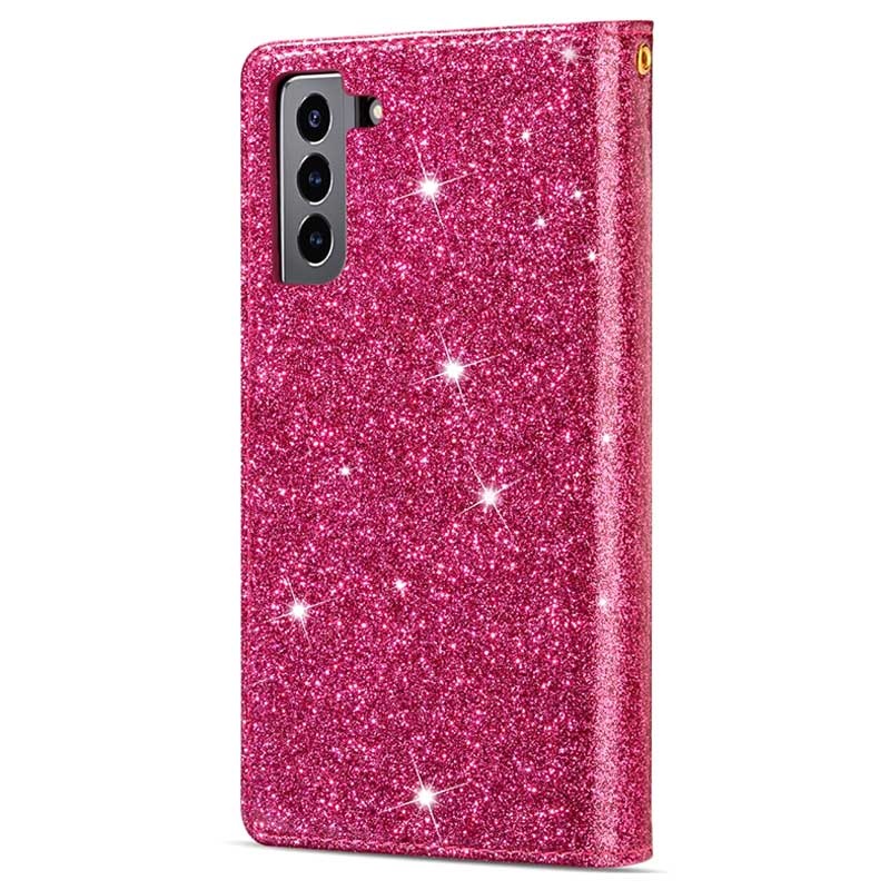 Med denne skinnende coverpung kan du bære din Samsung Galaxy S22 5G på elegant vis og holde den beskyttet samtidig. Den giver all-around beskyttelse, mens den stærke magnetiske lukning holder dine ejendele sikkert opbevaret. Coveret har flere lommer til kort og en stor lynlåslomme, og den sammenfoldelige bagside fungerer som et praktisk stativ til håndfrie visninger. Denne stilfulde coverpung til din Samsung Galaxy S22 5G, har en praktisk rem som du kan bruge til at holde ekstra godt fast på din telefon, når du er ude blandt mange mennesker.