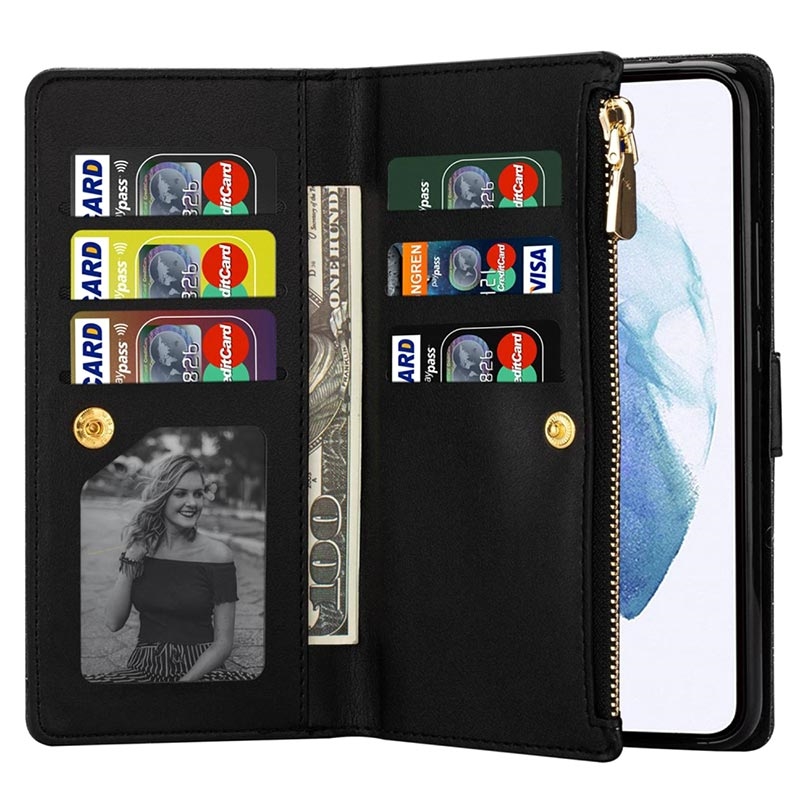 Klæd din Samsung Galaxy S23 Plus 5G på med denne skønne coverpung med masser af praktiske lommer. Denne coverpung er boostet med en stødsikker inderside af TPU, som sikrer en helt fantastisk beskyttelse mod buler og revner. Udover at have flere lommer til kort og kontanter, har denne coverpung også en lynlåslomme, som lader dig opbevare mønter eller andet. Det skinnende design får din Samsung Galaxy S23+ 5G til at se endnu mere forbløffende ud, mens den aftagelige rem gør det nemt for dig at bære rundt på den.