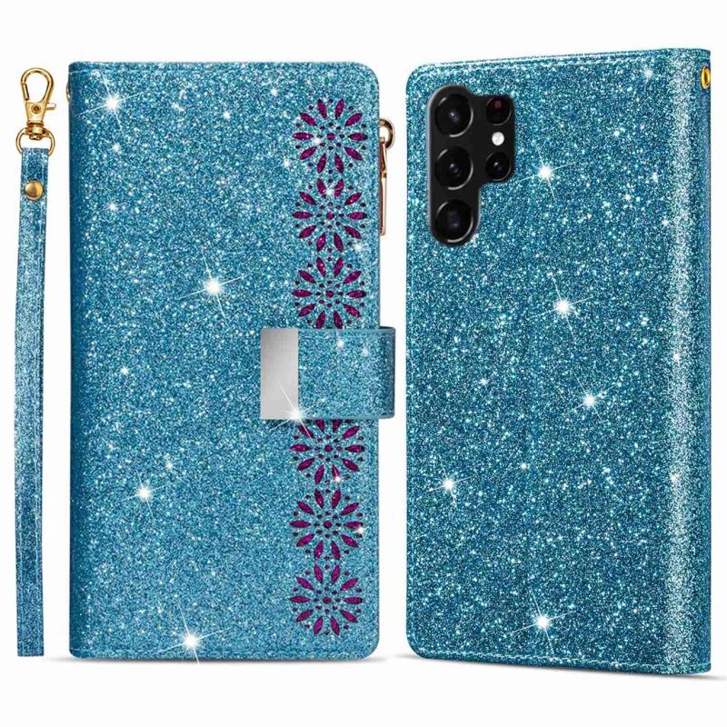 Med denne skinnende coverpung kan du bære din Samsung Galaxy S23 Ultra 5G på elegant vis og holde den beskyttet samtidig. Den giver all-around beskyttelse, mens den stærke magnetiske lukning holder dine ejendele sikkert opbevaret. Coveret har flere lommer til kort og en stor lynlåslomme, og den sammenfoldelige bagside fungerer som et praktisk stativ til håndfrie visninger. Denne stilfulde coverpung til din Samsung Galaxy S23 Ultra 5G, har en praktisk rem som du kan bruge til at holde ekstra godt fast på din telefon, når du er ude blandt mange mennesker.