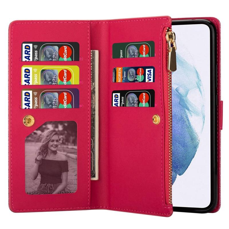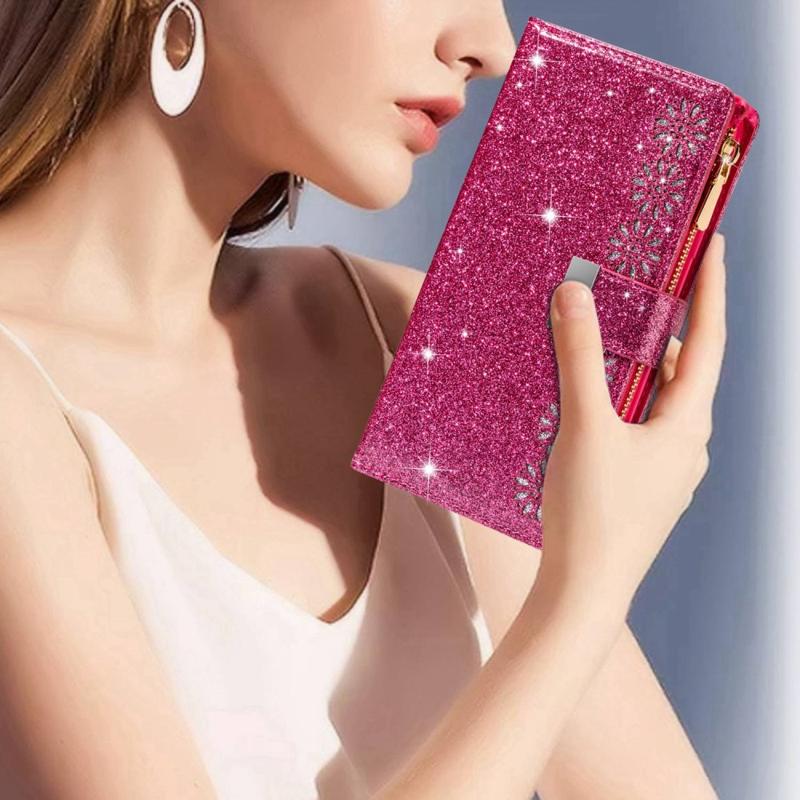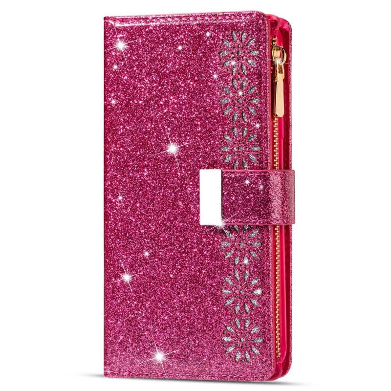 Med denne skinnende coverpung kan du bære din Samsung Galaxy S23 Ultra 5G på elegant vis og holde den beskyttet samtidig. Den giver all-around beskyttelse, mens den stærke magnetiske lukning holder dine ejendele sikkert opbevaret. Coveret har flere lommer til kort og en stor lynlåslomme, og den sammenfoldelige bagside fungerer som et praktisk stativ til håndfrie visninger. Denne stilfulde coverpung til din Samsung Galaxy S23 Ultra 5G, har en praktisk rem som du kan bruge til at holde ekstra godt fast på din telefon, når du er ude blandt mange mennesker.