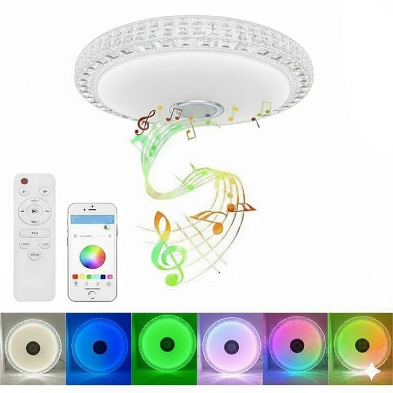 Denne Bluetooth Smart Ceiling Light kombinerer stil, lyd og smart kontrol til den ultimative belysningsoplevelse i hjemmet. Uanset om du vil slappe af med beroligende musik, sætte stemningen til en fest eller gøre dit arbejdsområde lysere, tilpasser den sig ubesværet til ethvert miljø.