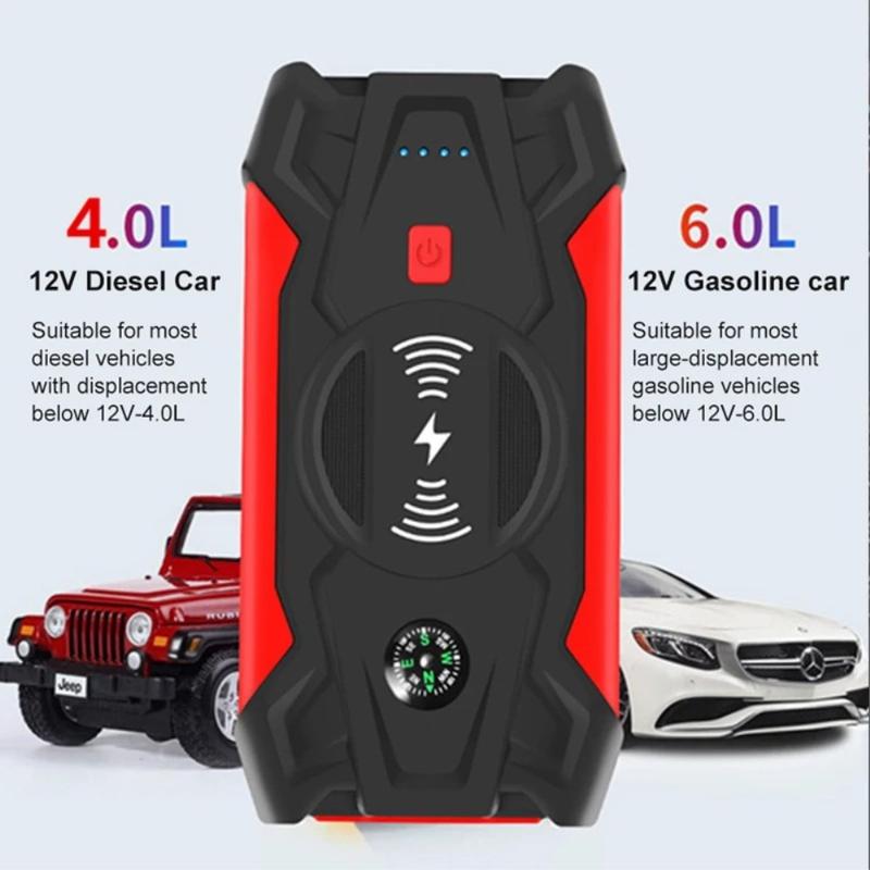 J13 LED Display Car Jump Starter er en alsidig og pålidelig nødstrømsforsyning med en indbygget stærk lommelygte og kompasfunktion. Den er lavet af materialer af høj kvalitet, som giver bedre ridsefasthed og har en nødstartfunktion til bilen, som beskytter dig i uventede situationer. Det fulde LED-display giver den en moderne og teknologisk følelse, så du nemt kan overvåge batteristrømmen. Den understøtter 2 USB-udgange på samme tid samt trådløs opladning, hvilket gør den velegnet til biler, motorcykler, mobiltelefoner, PSP, tablets, MP4, PMP, GPS og meget mere.