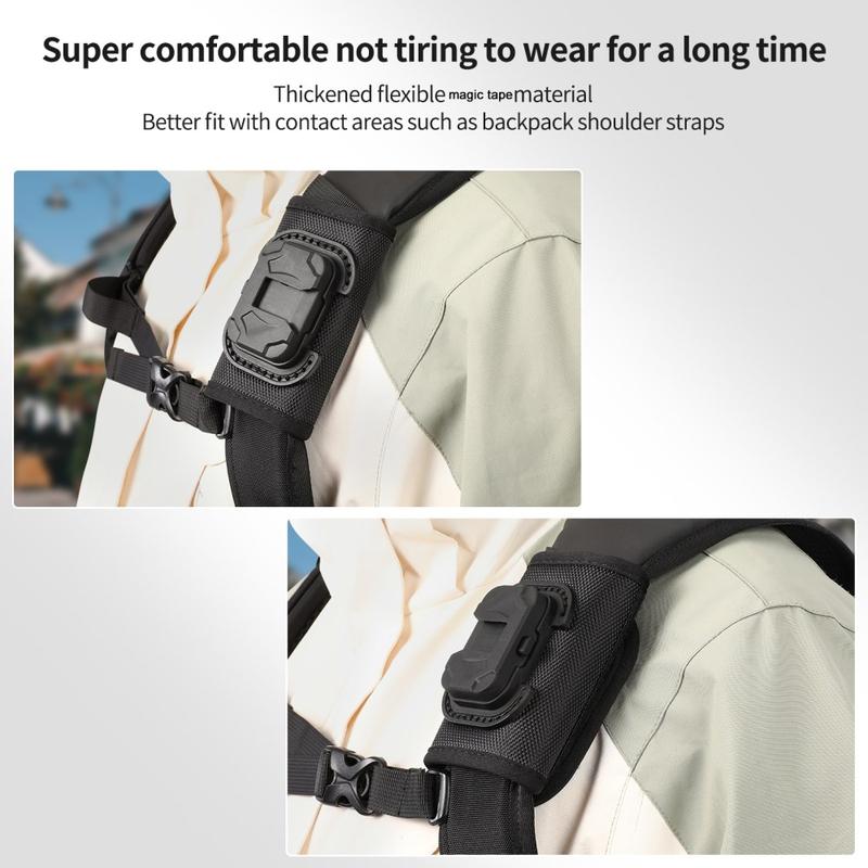 Hvis du ønsker et let og praktisk actionkamera-beslag til rygsækstropper med hurtigudløser og fleksibel vinkeljustering, er STARTRC Quick Release Universal Backpack Shoulder Strap Mount et fremragende valg. Det giver dig en mere stabil og tilgængelig måde at optage udendørsoptagelser på, samtidig med at du har hænderne fri.