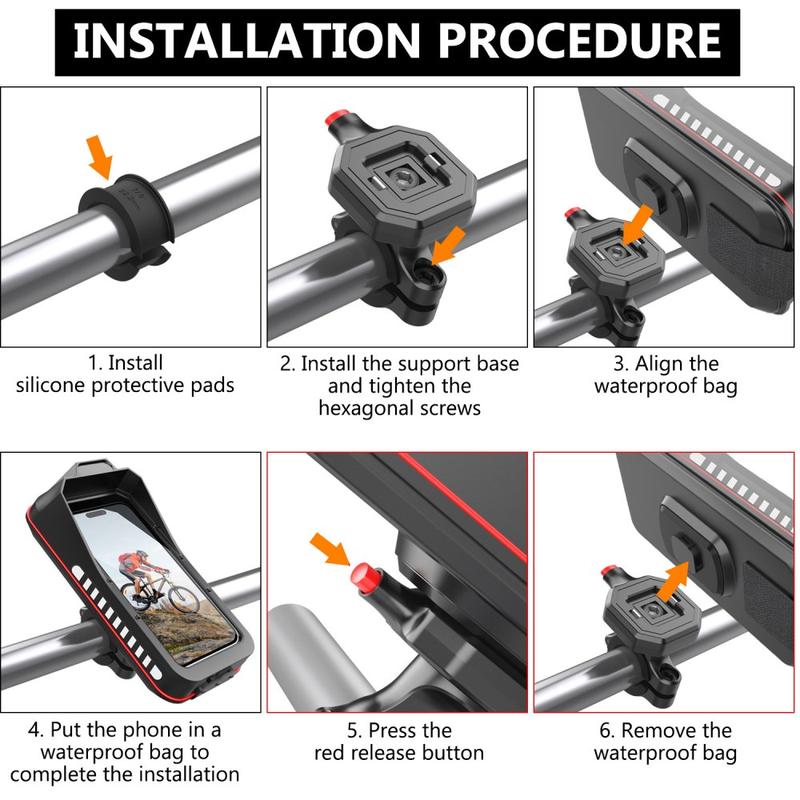 Stødsikker, vandtæt telefonholder til motorcykler - styrholder til cykler, e-cykler og scootere, til telefoner op til 7 tommer