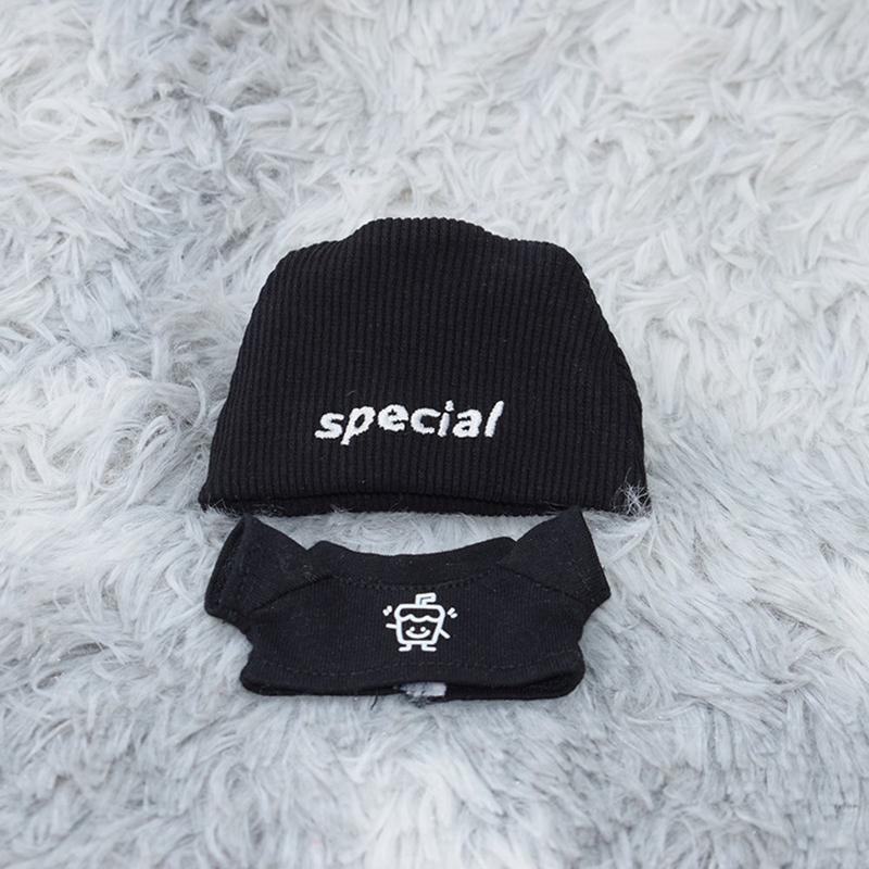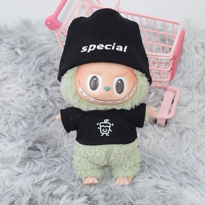 Street Style-tøj til Labubu Doll 17cm - Strikhue og grafisk T-shirt kostume