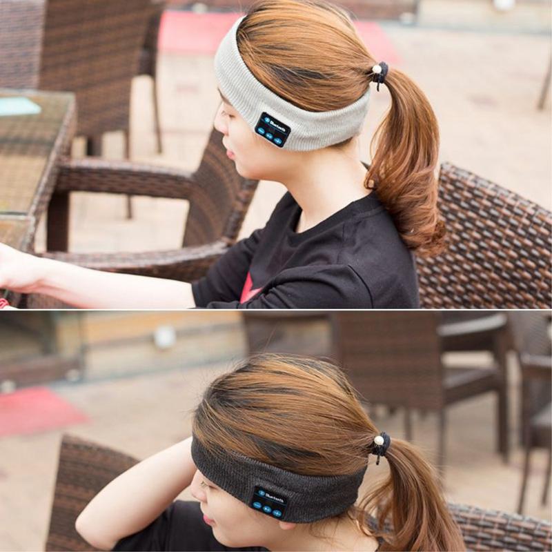 Strikket fleece-sports trådløst Bluetooth-hovedbånd med stereohovedtelefoner og mikrofon - sovehovedtelefoner til aktiv livsstil