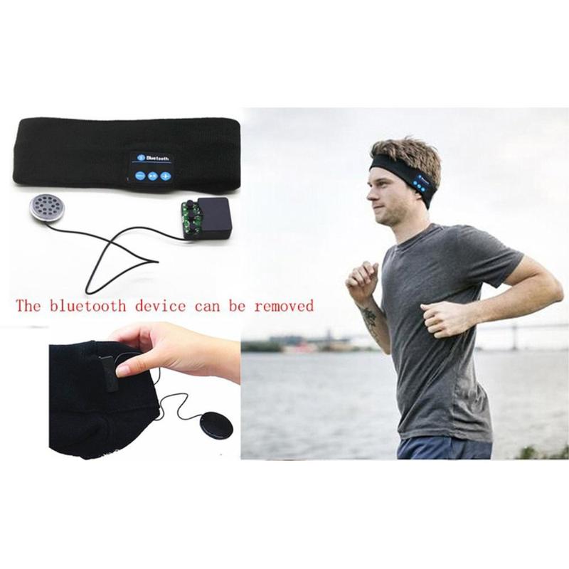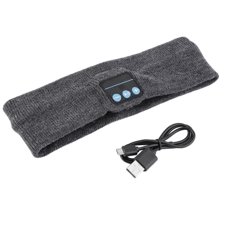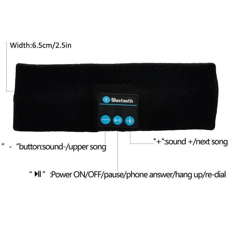 Strikket fleece-sports trådløst Bluetooth-hovedbånd med stereohovedtelefoner og mikrofon - sovehovedtelefoner til aktiv livsstil