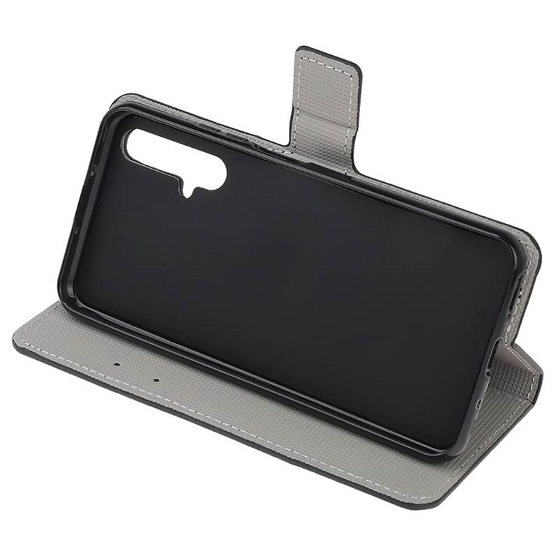 Style series coveret til Huawei Nova 5T, Honor 20/20S har et par praktiske rum til kort samt et sammenklappeligt stativ til håndfri media-filer og videopkald.