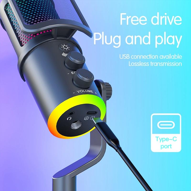 SU9 RGB Gaming Microphone tilsluttes direkte via USB eller Type-C for øjeblikkelig opsætning. Der kræves ingen drivere eller kompliceret installation - bare sæt den til og begynd at optage. Den er kompatibel med computere, laptops og smartphones og er perfekt til gaming, streaming og onlinemøder.