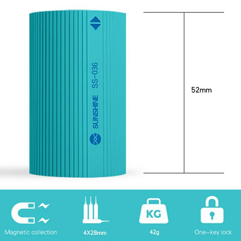 Udfør delikate reparationer med større kontrol ved hjælp af SUNSHINE SD-18E-sættet med elektrisk præcisionsskruetrækker. Dette kompakte værktøj er designet til elektronik, smartphones, små gadgets og andet præcisionsarbejde og kombinerer elektrisk brugervenlighed med manuel finishkraft i et slankt, professionelt design. Konstruktionen i fuld aluminium giver en eksklusiv fornemmelse, samtidig med at den er let og behagelig at bruge under detaljerede reparationsopgaver.