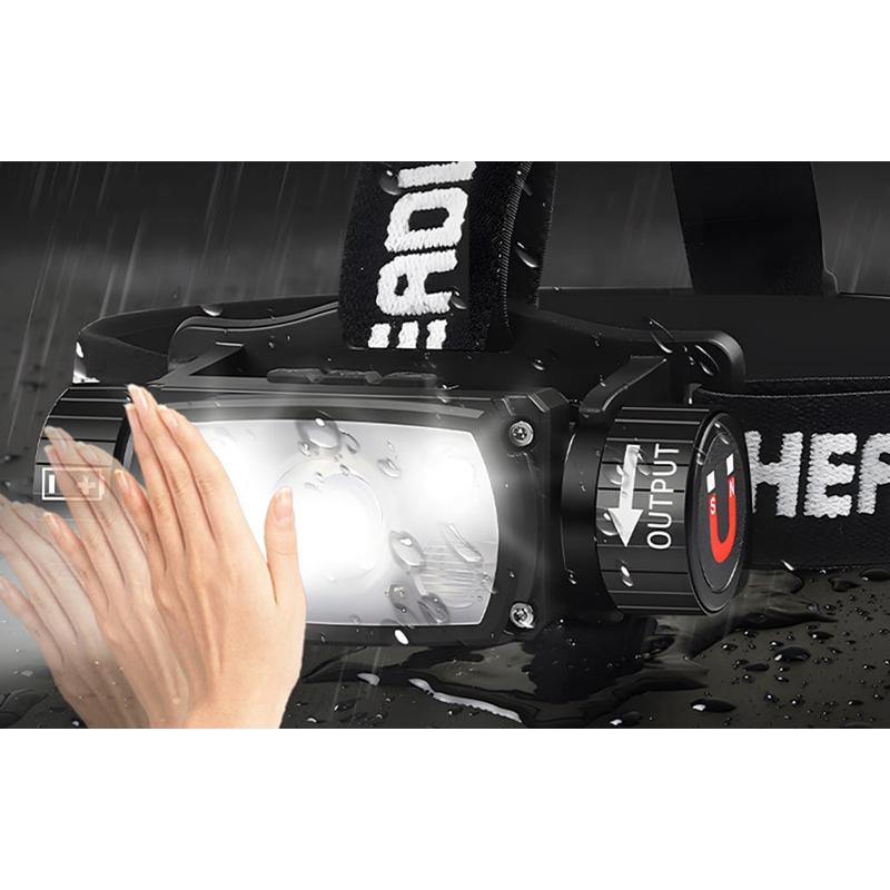 SuperFire HE11 Vandafvisende pandelampe / lommelygte med 6 lystilstande - 640lm, 20W
