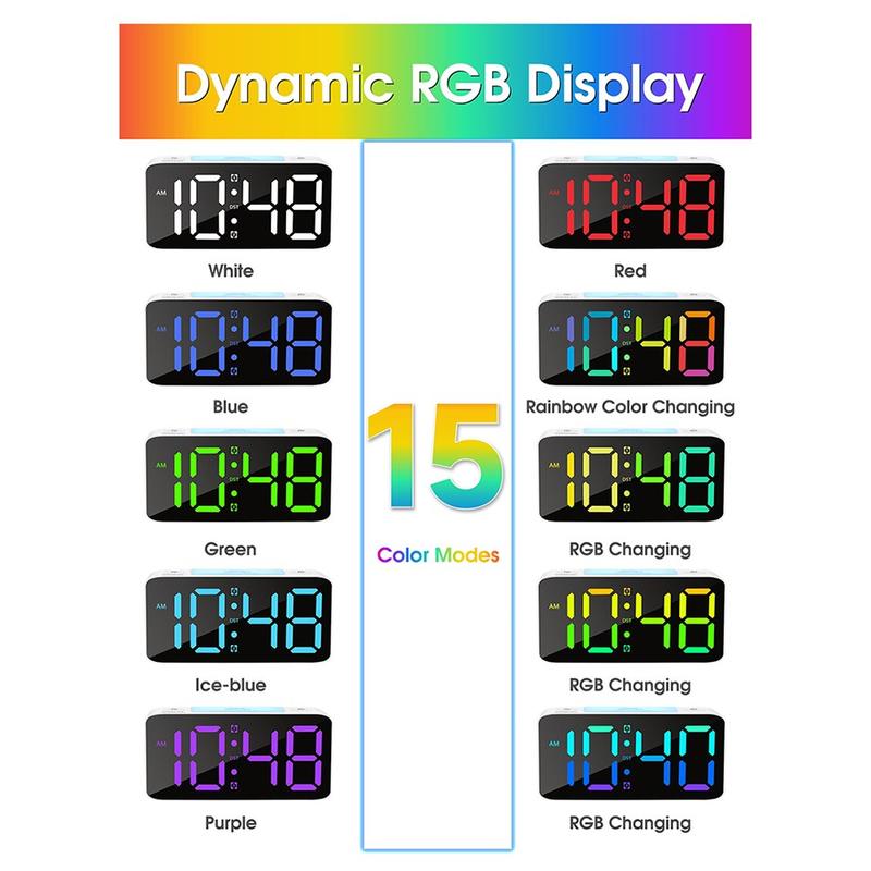 Superhøjt vækkeur til tunge søvngængere - digitalt ur med 7-farvet natlys