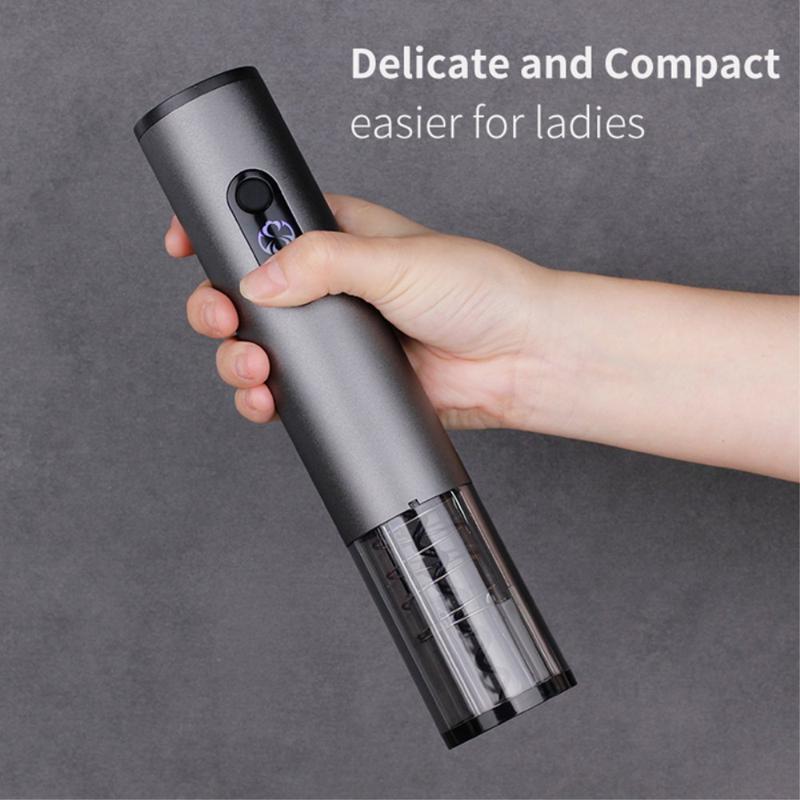 Åbn vinflasker uden besvær med den genopladelige elektriske vinåbner SW-C006U. Med et enkelt tryk på en knap fjerner den propper på få sekunder - så du undgår knækkede propper og rod ved bordet. Den medfølgende folieskærer gør det hurtigt at fjerne forseglinger, så du er klar til at skænke hurtigere ved middage, fester, bryllupper eller baropstillinger. Den er designet til at være kompakt og nem at opbevare og er et godt hverdagsredskab i køkkenet og en betænksom gave. En fuld opladning kan åbne op til 80 flasker (som angivet), og oplukkeren oplades nemt via USB-C. Den leveres med 4 genopladelige AA-nikkel-cadmium-batterier, så du kan bruge den lige fra kassen.