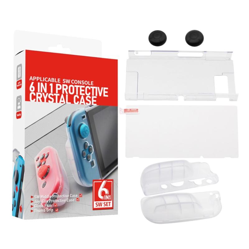 SW369 6-i-1 Clear Case Kit til Nintendo Switch, Anti-Scratch Shell Cover med skærmbeskytter og grebshætter