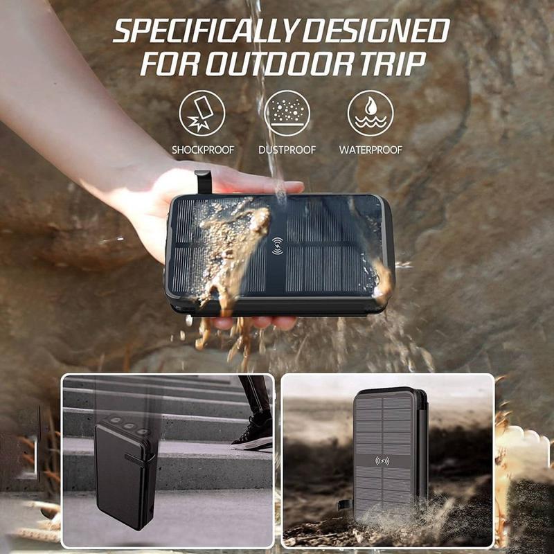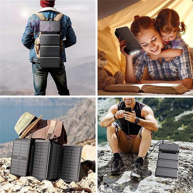 - 8 W foldbare solpaneler - Fire monokrystallinske blade foldes ud for at høste dagslys og genoplade pakken, når du hviler dig.