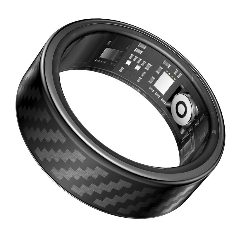 SY02 Smart ring med kulfibermønster - søvn-, blodoxygen- og hjerterytmesporing med trådløst opladningsetui