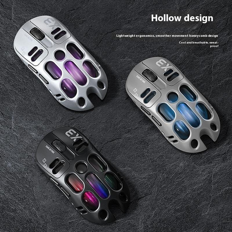 Opgrader dit gaming-setup med T-WOLF X3 Tri-Mode Gaming Mouse. Den er udviklet til konkurrencedygtig eSport og tilbyder tre alsidige tilslutningsmuligheder - Bluetooth, 2,4 GHz trådløs og kablet - så du kan tilpasse dig ethvert scenarie. Den hule skal reducerer vægten for hurtige bevægelser, og den levende RGB-baggrundsbelysning tilføjer en iøjnefaldende flair til din kampstation.