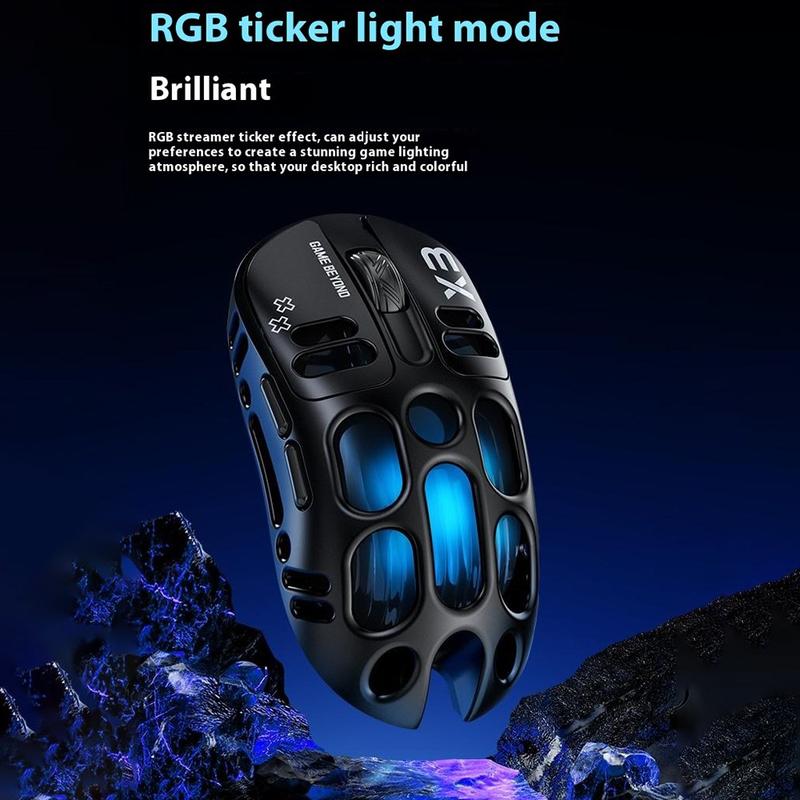 T-WOLF X3 Tri-Mode Gaming mus - Bluetooth, 2.4G trådløs og kablet med hult design og RGB-baggrundsbelysning