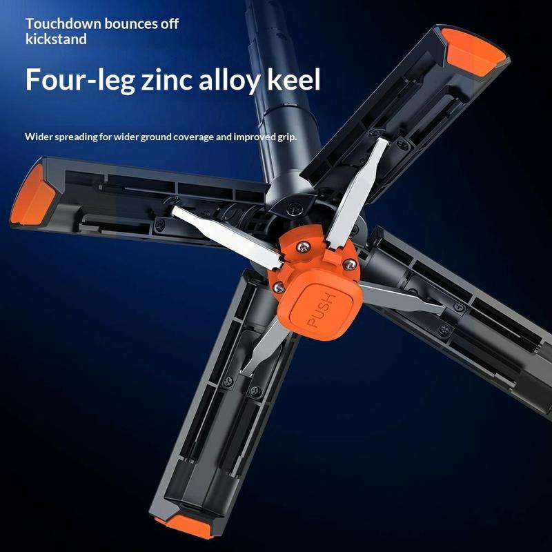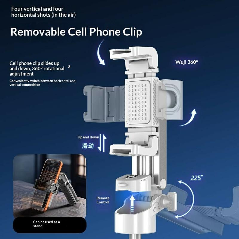 Stativbenene åbner automatisk og giver hurtig stabilitet, når det sættes ned, mens det udtrækkelige design og den drejelige telefonholder gør det nemt at skifte mellem forskellige optagevinkler og formater. Den medfølgende Bluetooth-fjernbetjening hjælper dig med at tage fotos uden brug af hænderne, og de to firkantede fyldlys giver ekstra lysstyrke til selfies, videosamtaler og optagelser.