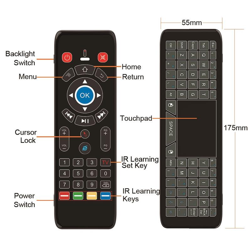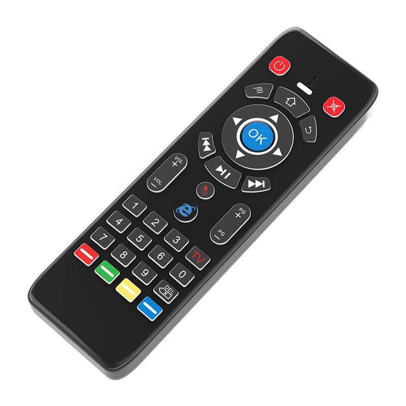 - Kontrolfunktioner: Gyroskopisk luftmus, touchpad, QWERTY-tastatur, IR-læring