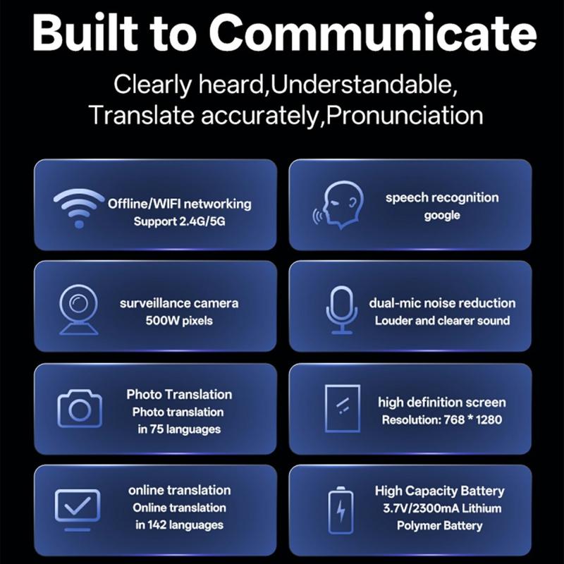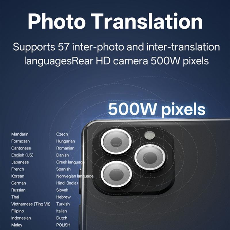 Bryd sprogbarrierer overalt med T22 smart voice translator, en kraftfuld håndholdt enhed designet til rejsende, professionelle og globale kommunikatører. Udstyret med en stor 5.5-tommers HD-skærm, AI-drevet oversættelse og dual-band Wi-Fi leverer den hurtige og præcise oversættelser på 142 sprog for tekst, tale og fotos.