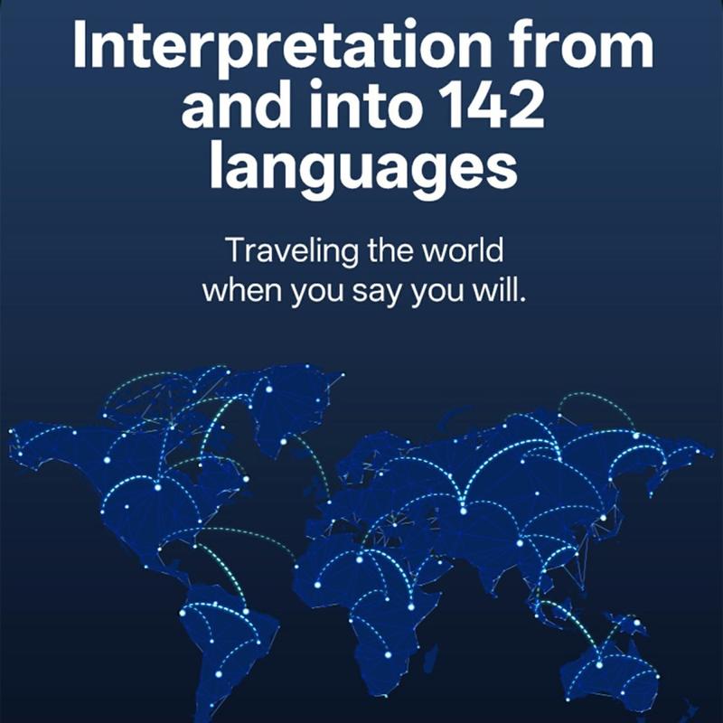 - Understøtter 142 sprog - Giver online-oversættelse i realtid til 142 sprog verden over, herunder engelsk, kinesisk, spansk, fransk, arabisk, japansk m.fl.