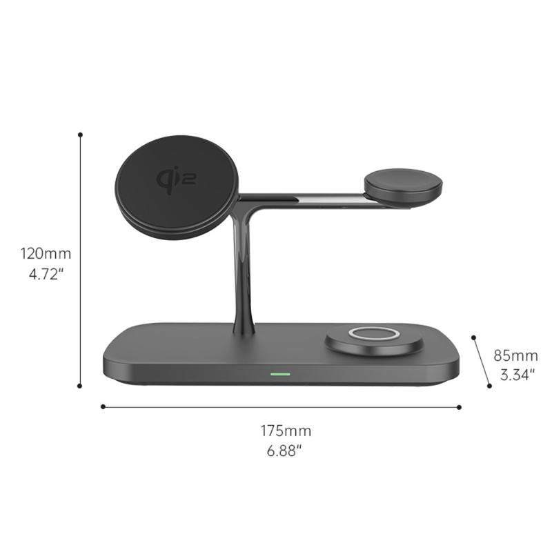 T255 Qi2 15W magnetisk trådløs oplader - 3-i-1 bordoplader til ur, høretelefoner og telefon