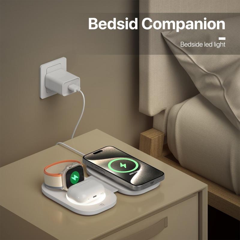 - Bred anvendelse: Denne 3-i-1 foldbare ladestation er perfekt til hjemmet, kontoret eller rejsen og forenkler dit liv ved at oplade alle dine vigtige enheder på én gang. Det er slut med at jonglere med flere opladere eller lede efter ledige stikkontakter.