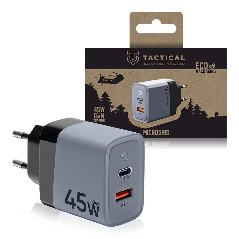 Tactical Microgrid GaN 45W vægoplader med PD3.0 USB-C, QC3.0 USB-A-porte