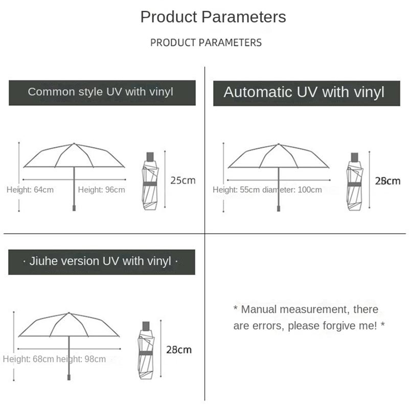 Anti-UV kompakt foldeparaply - bærbar rejsesol- og regnparaply med 8 ribber, tredobbelt design, opbevaringstaske