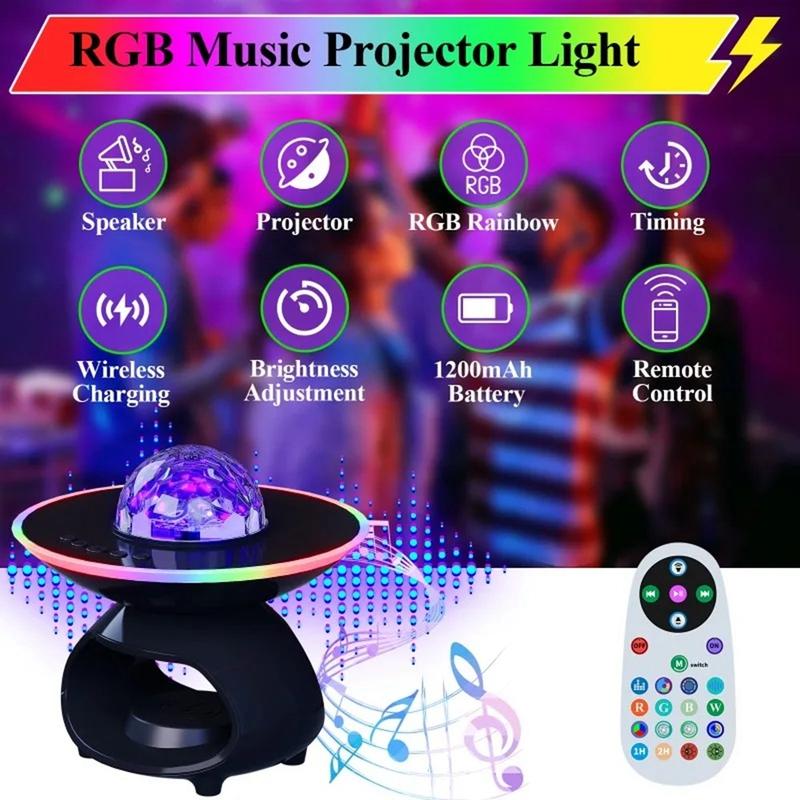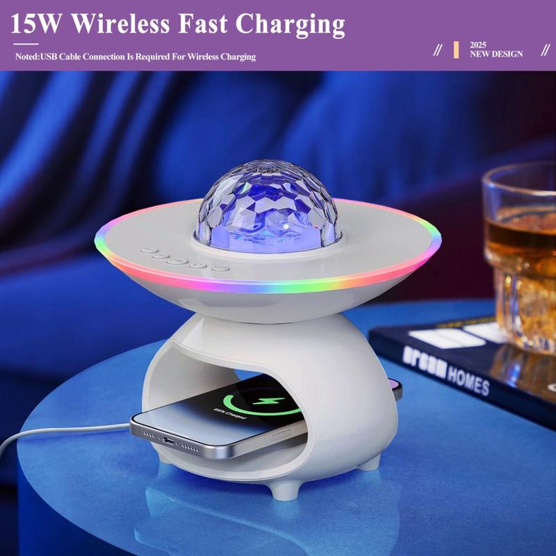TCSP-001-C 4-i-1-stjerneprojektorlampe - 15 W trådløs oplader, Bluetooth 5.0-højttaler og RGB-stemningslys